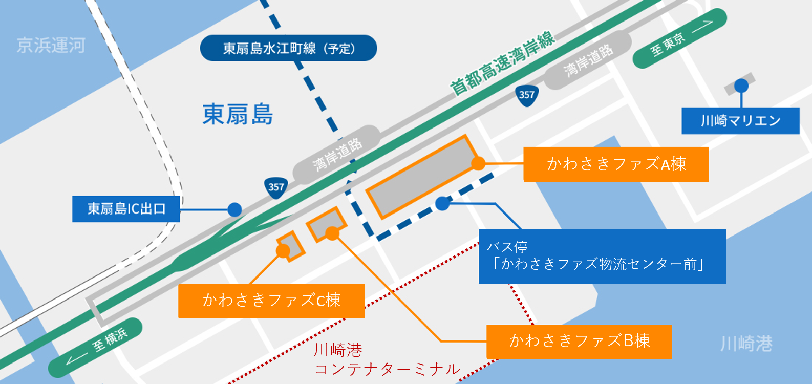 車:首都高速湾岸線「東扇島」ICから約5分 バス:JR川崎駅/京急川崎駅から約30分 JR横浜駅/京急横浜駅から約30分 |